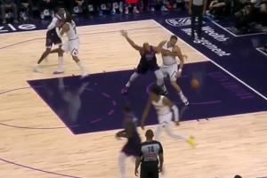 🤡滑稽!戈贝尔自信背打约基奇 撞了一下直接丢球了