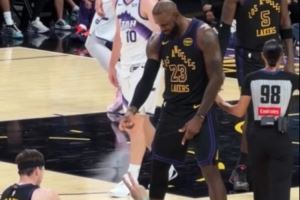 - 2025-11-19里夫斯投进3+1倒地 詹姆斯数手指卡节奏庆祝后拉起拥抱