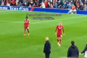 无语…埃基蒂克染红离场从斯洛特身后走过,后者全程背身没搭理他